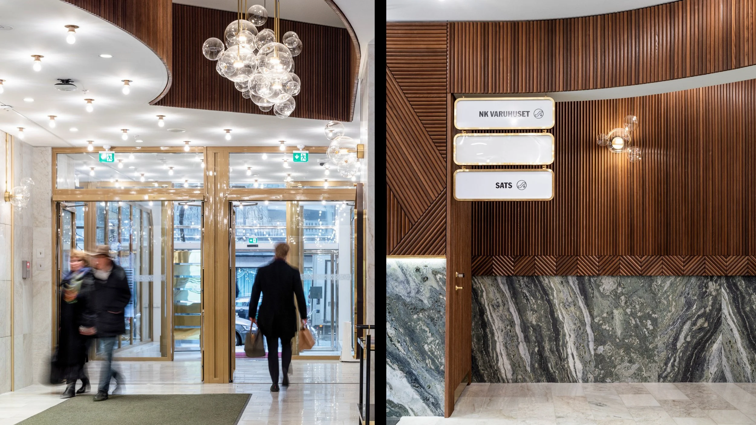 En helt ny entré på Regeringsgatans västra sida, och en förnyad sammankoppling med parkeringshuset Parkaden, blev den största utbyggnaden för det anrika varuhuset på decennier. Den tretton meter höga trapphallen är klädd i värmebehandlad ask, Brännlyckemarmor och Ekebergsmarmor.